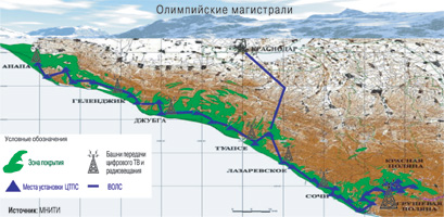 Третий и наиболее «очевидный» проект – создание инфраструктуры цифрового вещания для охвата территории проведения Олимпиады телерадиовещанием в объеме не менее 20 эфирных и 60 кабельных каналов – ведет рабочая группа, возглавляемая МНИТИ. Сегодня весь Краснодарский край, включая Сочи, получает ТВ в аналоговом формате. Между тем решением МОК уже с нынешнего года трансляции всех Олимпийских игр будут вестись в формате HD. К сочинской Олимпиаде МНИТИ разработал комплексный проект создания инфраструктуры ТВ-вещания с поддержкой ТВЧ на базе технологий и оборудования российских компаний. На выставке «ТВЧ Россия-2008» была представлена продукция большинства участников проекта: передающее оборудование НПП «Триада-ТВ», ФГУП «ОМПО ИРТЫШ» и ОАО «МАРТ»; приемное оборудование коллективного и индивидуального использования МНИТИ, компаний «Сигнал», «Телемак»; средства отображения информации для спортивных сооружений и культурных мероприятий – светодиодные дисплеи производства ООО «Дисплейные технологии». Вообще, по словам Н. Вилковой, гендиректора МНИТИ, в экспозиции «ТВЧ Россия-2008» приняло участие порядка 40 предприятий, готовых предоставить свою продукцию для проведения Олимпийских игр. Конечно, отечественное оборудование не может закрыть все участки инфраструктуры. В силу того что в России просто не производится профессиональное студийное HD-оборудование, предусмотрено