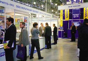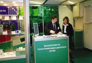 Экспозиция ИБ. Характерный признак большинства компаний-экспонентов раздела ИБ – их определенная связь с госструктурами: группа фирм, разрабатывающих в сотрудничестве с ФАПСИ аппаратно-программные средства шифрования, сертификационные и учебные центры, создатели средств защиты информации для госпредприятий. Известные в отрасли имена были представлены компаниями «Информзащита», «Оптима» и «Элвис Плюс».