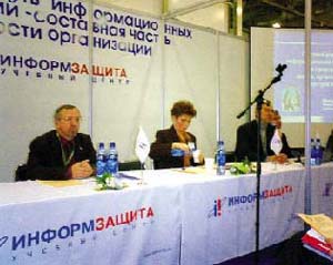 Семинар УЦ «Информзащита» «Безопасность информационных технологий – составная часть безопасности организации» был, по сути, попыткой воплотить идею такой прикладной тематики. Его цель – показать руководителям (в том числе IT-подразделений), что ИБ стала неотъемлемой составляющей бизнеса. Недопонимание ее значения может в одночасье обернуться серьезными финансовыми потерями. И эта цель, пожалуй, была достигнута. Во всяком случае, количество присутствовавших в зале разительно отличалось от малочисленной «аудитории», собиравшейся около стендов (хотя на сайте организатора семинара зарегистрировалось лишь 140 человек).
