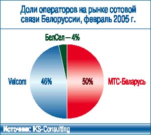 По прогнозам «iKS-Консалтинг», в 2005 г. абонентская база сотовых операторов в Белоруссии может превысить 3 млн, а уровень проникновения – 30%. Однако все это будет происходить с участием только одной российской компании – МТС. . До изменения политической ситуации в стране выход на белорусский рынок других российских операторов – «ВымпелКома» и «МегаФона» – представляется весьма сомнительным.