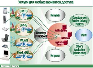 Платформа IMS от Siemens построена строго в соответствии с рекомендациями 3GPP и OMA. Широкое распространение протокола SIP позволяет предоставлять услуги абонентам не только одной выбранной сети, но и разбросанным по сетям других операторов, у которых имеются аналогичные платформы. А поскольку протокол SIP функционирует поверх IP, то абсолютно неважно, подключается абонент через мобильную или же через фиксированную сеть (xDSL или Wi-Fi). Внедрение платформы IMS позволит операторам предоставлять единообразный спектр услуг в сетях, созданных на основе разных технологий. Таким образом, это логичный путь конвергенции фиксированных и мобильных сетей связи. У оператора, работающего на платформе IMS, появляется возможность тарифицировать предоставляемые услуги по событиям, а не по объему (например, одно нажатие кнопки push в услуге push-to-talk стоит 2 цента), включая услуги контент-провайдеров, пользующихся протоколом SIP. Конечно, существует вероятность, что клиенты будут подключаться к сторонним бесплатным серверам в Интернете, но в этом случае оператор мобильной связи не сможет обеспечить необходимую приоритизацию интерактивного трафика, а значит, качество предоставляемых услуг будет нестабильным. Мобильные операторы находятся в выгодном положении, так как обладают громадной абонентской базой, авторитетом и гарантиями предоставления услуг.