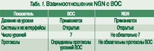 Многоуровневое построение систем электросвязи разработано МСЭ-Т совместно с ИСО в Рекомендации МСЭ-Т Х. 200 о 7-уровневой базовой эталонной модели ВОС. В NGN нашел применение только общий принцип деления на уровни, а детальные предписания Х. 200 не используются (табл. 1). В NGN предполагается поддерживать широкий диапазон классов качества обслуживания (КО), с гарантированным или негарантированным КО. За основу нормирования пакетной сети берется Рекомендация Y. 1541 (см. «ИКС» №10 ’2002, с. 60 и 1 ’2004, с. 59). Должны быть также учтены нормы на КО сетей подвижной связи и других возможных сетей доступа. Для обеспечения КО «от конца до конца» в неоднородной сети необходима гармонизация классов КО и соответствующих норм. Класс может заказываться абонентом или автоматически определяться сетью по запрошенной услуге. Система сигнализации NGN (на основе существующих или новых протоколов) должна обеспечивать передачу сведений о заказанном КО.