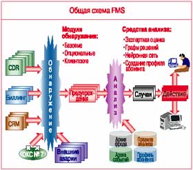 Главная задача FMS – обнаружить в общем потоке информации о событиях, происходящих в сети (а таких в крупных сетях десятки миллионов в сутки! ), те, которые так или иначе указывают на характерные для мошеннических действий признаки (их – несколько тысяч в сутки), и определить, является ли данная активность абонента мошеннической или нет (подобных случаев в реальной сети – сотни). При этом задача логически разделяется на два этапа – обнаружение подозрительных событий и их анализ.