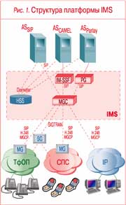 Проект Р1110 не предусматривал разработку методов роуминга услуг, т.е. возможности для абонента использовать услугу в гостевой сети на своем языке, по привычному сценарию и т.д. Для этого требовались специальные серверы для поддержки гостевых абонентов и функциональность MGC для перемаршрутизации вызовов. Поэтому в 2002 г. партнерством 3GPP была предложена концепция IMS. В общем виде платформу IMS (рис. 1) можно представить как совокупность следующих устройств:
