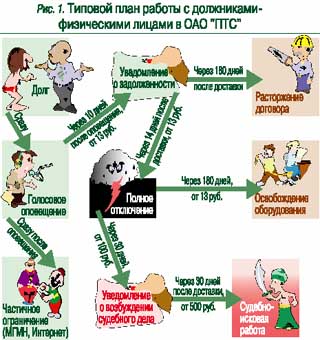- Особенности работы с определенными группами клиентов. Некоторые группы клиентов, например силовые ведомства, прокуратура и т.п., требуют особой технологии работы с задолженностью. Обычно меры воздействия на таких клиентов исключают ограничение услуг связи или выключение электроэнергии, а основной упор делается на выставление исков.