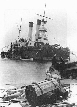 13 ноября 1899 г. в Балтийском море потерпел аварию броненосец российского флота «Генерал-адмирал Апраксин». Известие об этом тут же заполнило полосы столичных газет, в адмиралтейство хлынули письма читателей с проектами спасательной операции. Тем временем наступил декабрь, спасателям предстояло работать в тяжелейших условиях: вытаскивать огромный корабль из замерзающего моря, а зимние подводные работы, как известно, дело опасное.