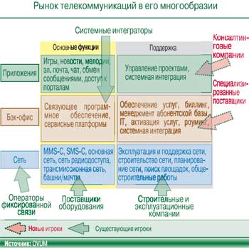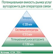 «В дополнение к подъему системной интеграции в области мобильных приложений в следующие несколько лет мы ожидаем существенного роста аутсорсинга основной инфраструктуры сетей. Рынок работ для передачи поставщикам мы оцениваем приблизительно в $12–15 млрд к 2007 г., по большей части это вероятно для не очень крупных компаний-операторов сформировавшихся рынков», – заявляют аналитики OVUM.
