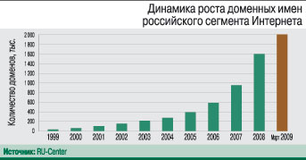 Было время, когда в зоне .RU на две тысячи пользователей приходилось 100 доменных имен. 22 марта 2009 г. в ней был зарегистрирован двухмиллионный домен. За каждым из доменов – бизнес либо частный пользователь. Для бизнеса доменное имя – это часть имиджа, бренда, возможность идентификации, витрина деятельности, наконец. Для простого интернет-пользователя – способ самовыражения, интеграции в социальное пространство.