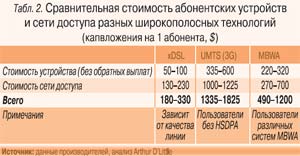 При выборе системы должны быть приняты во внимание стоимость доставки данных, стоимость устройств, сети доступа и плотность развертывания (табл. 2). Для оценки относительной стоимости таких различных устройств можно использовать метод сравнения способности каждой системы предоставлять определенную скорость передачи данных в пределах конкретной зоны.