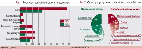 Электронная торговля включает маркетинг и заказ товаров, платежные системы и системы предоставления услуг, в частности связанных с доставкой товаров. На сегодняшний день в России более развита первая составляющая электронной торговли, а именно маркетинг и возможность заказа товара в электронных магазинах. По развитию электронного бизнеса Западная Европа отстает от США на одиндва года, а Россия – на три-четыре. Мировая практика последних десятилетий показала, что информация в электронной форме превратилась не только в важнейший компонент современной рыночной инфраструктуры, но и непосредственно в экономический ресурс роста и развития.