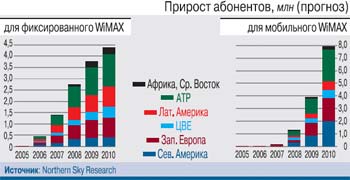 Пока стандарт полностью не ратифицирован, в мире множатся так называемые preWiMAX системы. На начало года только Intel рапортовала, что в мире уже работает 8 таких систем и столько же будет запущено в 2006 г. Тестирование уже идет, и, по оценкам Northern Sky Research, к середине 2006 г. парк фиксированных WiMAX устройств превысит полмиллиона, а в 2007 г. их число удвоится. В следующие 4 года абонентская база должна достичь 12 млн. Но успехи фиксированных ни что по сравнению с вершинами, которые должен покорить мобильный – 802.16е. И хотя его фактически пока нет, Northern Sky предрекает ему более быстрый рост абонентской базы, чем для фиксированного собрата. Обгон последнего запланирован на 2008 г.