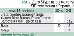 Другим важнейшим результатом стало то, что выбранные направления деятельности позволяют операторам фиксированной связи успешно конкурировать с компаниями, оказывающими бесплатные услуги, такими, например, как Skype. В частности, в Европе позиции Skype в 2005 г. заметно ухудшились при одновременном росте интереса потребителей к услугам British Telecom, France Telecom, Deutsche Telekom и пр. (табл. 2).