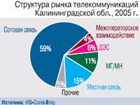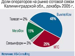 Калининградская область – одна из самых сотовых в стране. В первые месяцы 2006 г. здесь завершилась полная мобилизация населения – проникновение сотовой связи достигло 100%. На начало года в регионе насчитывалось 909 тыс. пользователей сотовой связи – на 55% больше, чем годом ранее. Об этом позаботились целых 6 мобильных операторов, действующих в регионе. Правит бал на рынке федеральная тройка. Почти половину его контролирует «ВымпелКом», благодаря удачному приобретению местного оператора «Экстел». Причем успех «ВымпелКома» на калининградском рынке укрепляется: в 2005 г. абонентская база выросла на 2%. Идущий на втором месте МТС постепенно сдает позиции – доля его абонентов сократилась на 4%. Его медленно, но верно нагоняет «МегаФон», отвоевавший 2% рынка. Действует в регионе и квазифедеральный оператор – «Скай Линк», которому еще предстоит продемонстрировать калининградцам все достоинства технологии CDMA.
