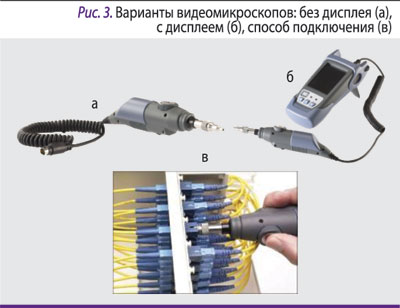Для диагностики качества и чистоты поверхности коннектора применяются эксплуатационные микроскопы либо видеомикроскопы. Использовать видеомикроскопы (рис. 3) в проектах FTTx предпочтительнее, поскольку они дают более объективную картину состояния коннектора и меньше утомляют инженера, которому за смену иногда нужно просмотреть сотни таких коннекторов.