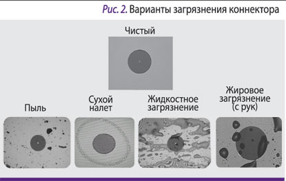 Один из ключевых факторов, влияющих на бюджет линии FTTx/PON, – чистота коннекторов. Например, пылинка размером 1 микрон в одномодовом кабеле уменьшает сигнал на 1% (0,05 дБ). Но еще опаснее пыль и грязь в сетях кабельного ТВ, где используются мощные источники сигнала до +30 дБм (1 Вт). Здесь пыль и грязь становятся источником нагревания такой мощности, что оптический интерфейс может расплавиться.