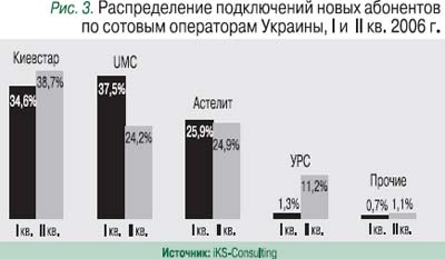 2006-й обещает стать последним годом массового набора абонентов в Украине. По прогнозам «iKSКонсалтинг», к концу текущего года число мобильных абонентов в стране превысит 42 млн, в результате чего уровень номинального проникновения сотовой связи достигнет 90% (а в 2007 г. перекроет 100%). При этом уровень реального проникновения вряд ли перешагнет порог в 70%.