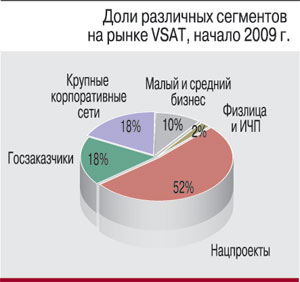 Принципиально картина на VSAT-рынке может измениться только в 2012 г., когда на орбите появятся новые российские тяжелые ИСЗ «Экспресс-АМ4», «АМ5» и «АМ6» и, может быть, «Ямалы-400». Главное, что помимо свободной емкости принесут новые борты, это лучшая энергетика с ЭИИМ в районе 51 дБВт. Она позволит перейти на массовое использование антенн диаметром 0,9–1 м. Это снизит стоимость оборудования (40% цены антенны – это доставка и таможенные платежи) и его установки как минимум на 50%, приблизив ее к стоимости установки спутникового ТВ. Если к этому времени будет облегчен доступ к кредитам, то кто-нибудь из операторов может рискнуть и существенно снизить цены на сервис и оборудование или начать предоставлять его в рассрочку в ожидании стремительного роста своей абонентской базы.