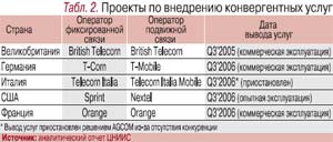 Последнее обстоятельство беспокоит регулирующие органы, отвечающие за создание конкуренции на рынке связи. В этом отношении показательна неудавшаяся попытка оператора Telecom Italia запустить конвергентные услуги. Итальянский регулирующий орган AGCOM в июне 2006 г. запретил компании внедрение новых услуг, мотивируя это отсутствием конкуренции на национальном рынке. В 2005–2006 гг. целый ряд европейских операторов запустил и анонсировал конвергентные услуги (табл. 2).