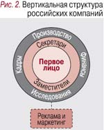 Для них, воспитанных на «производственном» мышлении, работа – это перемещение ящика из пункта А в пункт В, приобретение оборудования или строительство склада, а маркетинг – пустые новомодные штучки. Да и характерная для российских компаний вертикальная командная структура – не лучшая среда для творческой маркетинговой мысли. В «аппендикс» рекламы и маркетинга (рис. 2) обычно ссылают тех, кому нельзя поручить настоящее дело, и вспоминают об этом отделе в основном при проведении выставок или когда нужно заказывать сувениры.
