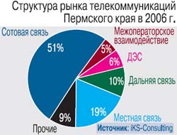 Край на границе Европы и Азии вначале стал базой для присоединения к России сибирских земель. А в 18-м веке, на подъеме горнозаводского дела, возник на Каме город-завод, выплавлявший медь. В дальнейшем добавились машиностроительная, химическая, лесная промышленность, определившие появление города-миллионера, пусть не крупнейшего, но важного экономического центра Урала. Пермский край – не самый крупный телекоммуникационный рынок. По предварительным результатам 2006 г., общий объем его доходов от услуг связи оценивается в $420 млн. По этому показателю пермяки занимают четвертое место среди регионов Урала, к которым край относится исторически, и пятое – среди регионов Поволжья, к которым его присоединили при территориальном переделе страны. Тем не менее Пермский край играет более чем заметную роль в развитии телекоммуникаций этих двух регионов.