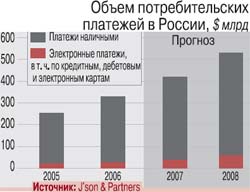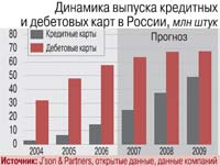 Исследования J'son & Partners показали, что российские граждане при пользовании кредитными картами в среднем тратят на 30% больше средств, чем в случае дебетовых карт. Аналитики оценивают количество кредитных карт к концу 2006 г. в 14,5 млн шт., дебетовых – 57,1 млн шт. (из них 54 млн – зарплатные).