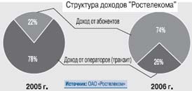 В то же время «Межрегиональный ТранзитТелеком», лишь недавно получивший лицензию на дальнюю связь, смог завоевать 6% рынка конечных абонентов (данные на февраль 2007 г.), и за 2006 г. создать операторам возможность прямых подключений к международным магистралям первого уровня, для чего запущены дополнительные сервисы (телеголосование, доставка контента, GPRS - роуминг и др.) и гарантируется оговоренный уровень SLA. В сегменте транзита доля МТТ, по его собственным оценкам, достигла 30%, теперь стратегическая задача – удержать позиции. Для экспансии же в сегменте конечных пользователей созданы все условия – от ввода собственной системы биллинга до разнообразных способов продвижения сервиса (квази франшиза, выбор оператора по номеру доступа к услуге и др.).
