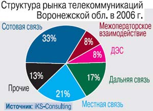 По объему телекоммуникационного рынка Воронежская область в Центральном ФО уступает лишь столице да Московской области: доходы от услуг связи в 2006 г. составили $270 млн, что на треть больше, чем у соседей по макрорегиону. Правда, в общероссийском масштабе Воронежская область занимает лишь 26-е место, но уж если выбирать для развития бизнеса город, расположенный не так далеко от Москвы, обойти вниманием Воронеж нельзя.