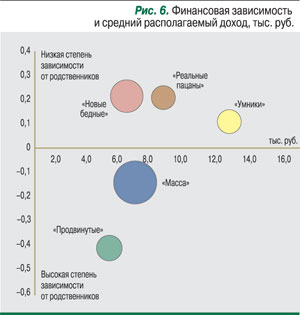 Информация об источниках доходов позволяет четче обозначить материальные различия между сегментами. «Реальные пацаны» нередко уже зарабатывают сами (22%), «продвинутые» чаще получают помощь родителей (63%), процент «умников», получающих стипендию (59%) и имеющих подработку (21%), выше, чем в остальных группах (рис. 6).