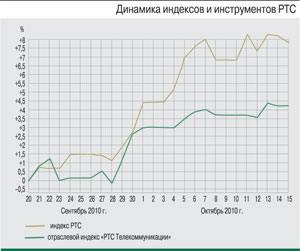Негативные новости, поступающие из стран еврозоны, нивелировались ростом цен на нефть. Так, индекс ММВБ прибавил 5,2% до отметки 1491,48 пункта, индекс РТС повысился на 8,04%, превысив 1581,90 пункта. Отраслевой индекс «ММВБ телекоммуникации» (MICEX TLC) за месяц потерял 0,85%, дойдя до уровня 2206,16 пункта, а индекс «РТС Телекоммуникации» (RTStl), напротив, прибавил на 3,64%, достигнув отметки 232,2 пункта.