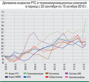 Умеренно позитивная динамика на достаточно слабом внешнем фоне – такова характеристика фондового рынка телекома в конце сентября – первой половине октября. Два важных для рынка события были связаны с «Ростелекомом» – это завершение выкупа акций у миноритариев «Ростелекома» и МРК и смена руководства «Связьинвеста».