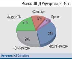 В Ижевске хозяйничают альтернативные операторы: два федеральных, чье противостояние традиционно для Поволжья – «ЭР-Телеком» (лидер рынка с 60 тыс. абонентов) и «Комстар», третий же – крупный местный провайдер компания «Марк». Период ценовых войн между ними давно миновал, сегодня конкуренция перешла на новый уровень – компании целенаправленно борются за клиента, повышая качество и расширяя спектр услуг (телевидение, IP-телефония). В результате активных действий провайдеров по проникновению услуги ШПД (68%) Ижевск сегодня занимает верхние строчки в рейтингах, заметно уступая лишь Москве и Петербургу. В целом в республике проникновение услуги (38%) также выше, чем в среднем по России (33%).