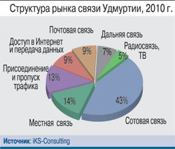 Самый крупный сегмент телеком-рынка, сотовая связь, представлен в республике четырьмя операторами стандарта GSM: «МегаФон», МТС, «Билайн», ТЕЛЕ2 – и оператором стандарта CDMA «Скай Линк». Высококонкурентный рынок отличается гибким ценообразованием – Удмуртия входит в тройку регионов с самыми низкими тарифами на сотовую связь.