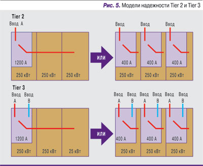 Системы на основе ИБП постоянного тока могут соответствовать уровню надежности Tier 3, если они обладают возможностью переключения между двумя входными сетями электропитания (рис. 5). Селекторный переключатель на входе предназначен для техобслуживания и позволяет обслуживать оборудование, расположенное выше по линии, без отключения системы.