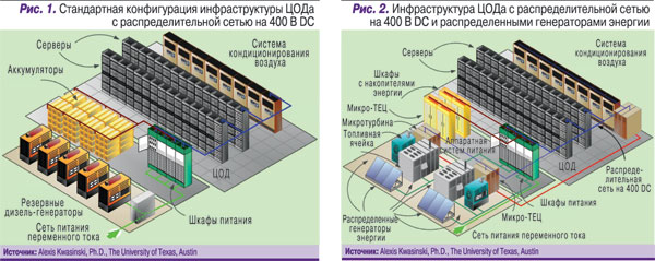 С ростом использования информационных систем растет количество и масштаб центров обработки данных. Так, только в 2004–2009 гг. в среднестатистическом ЦОДе число серверных стоек выросло в 4–10 раз. Для владельцев ЦОДов главными трудностями стали увеличение плотности электроэнергии и рост ее потребления. После 2007 г. в отрасли был внедрен ряд инициатив по повышению эффективности использования энергии. Однако эти оптимизационные меры практически не затронули системы электропитания. Поскольку чистое, бесперебойное питание жизненно важно для работы ЦОДов, владельцы этих объектов неохотно внедряют решения или технологии, которые могут поставить под угрозу их функционирование. Тем не менее общепризнанно, что традиционные системы распределения питания (48 В постоянного тока (DC) и 208 В переменного тока (AC)) имеют недостатки, которые можно минимизировать за счет использования альтернативных конфигураций и высокоэффективных компонентов без снижения надежности систем.