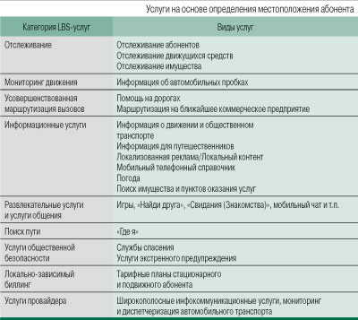 Ключевой для LBS момент – услуга местоопределения (Location Service, LCS) абонента, что позволяет расширить существующие услуги – знакомства, запрос погоды, биллинговые системы и т.д., – а также предоставить ряд новых услуг, базирующихся на этом знании. Основные категории LBS-услуг приведены в таблице (алгоритм их предоставления показан на рис. 2).