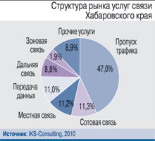 Среди регионов Дальневосточного федерального округа Хабаровский край второй (после Приморского края) как по численности населения, так и по объему доходов от услуг связи. В 2010 г. объем доходов телекоммуникационной отрасли в крае составил 14,8 млрд руб. – 24% совокупной выручки операторов связи в ДВФО.