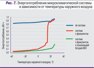 Также весьма важно, что, когда температуры наружного воздуха близки к температуре внутри базовой станции, единственным решением, обеспечивающим энергосбережение, является повышение уставки температуры внутри БС при наличии системы локализации батарей ИБП (рис. 7).