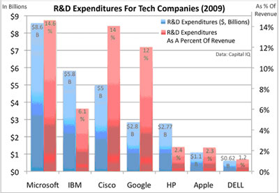 График: расходы крупнейших технологических компаний на R&D (2009 год)