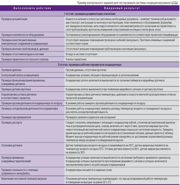 В качестве примера приведем рекомендации по минимальному набору функций, которые необходимо протестировать при испытании системы кондиционирования ЦОДа (см. таблицу).