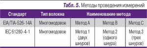 Порядок и состав необходимых сертификационных испытаний и соответствующих методов приводятся в стандарте ISO/IEC 14763-3 и в последних дополнениях к нему (в редакции 2009 г.). Выделяется три метода проведения измерений при помощи измерителя мощности (в табл. 5 приведены их наименования согласно американскому стандарту EIA/TIA-526-14A и международному IEC 61280-4-1).