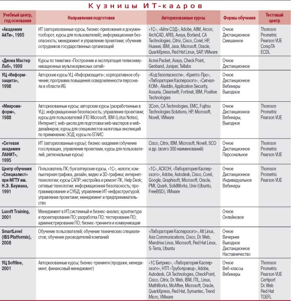 На пересечении интересов обеих групп – учебные центры. Первым они дают знания, умения и навыки – и подтверждающие их наличие документы, вторым – возможность завербовать под свои знамена армию ИТ-специалистов, приверженных их продуктам. То, что рынок ИТ-обучения расположился на довольно бойком месте, подтверждается и шестнадцатилетней историей его существования в России, и стабильным финансовым положением его ведущих игроков.