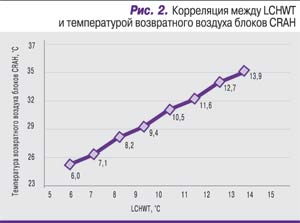 Прежде чем анализировать данные о суммарной экономии электроэнергии для обоих значений параметра ∆Т, обратим внимание на один важный момент. Температура возвратного воздуха на блоках вентиляционного агрегата компьютерного зала (CRAH) увеличивается пропорционально росту LCHWT (рис. 2). Температура возвратного воздуха может служить мерой средней температуры воздуха в помещении, и нужно подчеркнуть прямую корреляцию этой величины с параметром LCHWT, что может оказывать отрицательное влияние на температурный режим в ЦОДе. На практике это означает, что надлежащее размещение рядов стоек по схеме HAC/CAC с тем, чтобы направлять горячий воздух обратно на блоки CRAH, является обязательным. Если этого не сделать, то потребуется установить большее число этих блоков, чтобы компенсировать более высокую температуру возвратного воздуха. В результате электродвигатели вентиляторов блоков CRAH будут потреблять электроэнергии больше, чем чиллеры и насосы. Наша компьютерная модель схему размещения оборудования в ЦОДе учитывала, поэтому температура возвращаемого воздуха менялась с изменением LCHWT, но это не потребовало повышения мощности вентиляторов блоков CRAH.