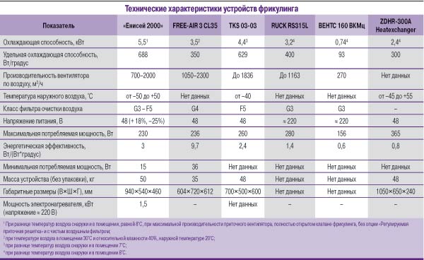 В первую очередь в технических требованиях необходимо определить величину максимальной тепловой нагрузки. Имея эти данные и данные по удельной охлаждающей способности различных устройств фрикулинга, для каждого из них можно рассчитать температурный перепад, при котором теплоизбытки полностью ассимилируются. Например, тепловыделение технологического оборудования базовой станции составляет 5 кВт. Рассчитываем перепады температур для различных устройств:
