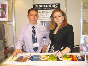 Источники бесперебойного питания французского производителя Socomec UPC демонстрировал ее официальный дистрибьютор – российская компания «Преора». На ее стенде можно было увидеть ИБП Green Power серии Masterys BC с максимальной мощностью 120 кВА, коэффициентом выходной мощности 0,9 и КПД 96%. Здесь же была выставлена трехфазная система Green Power Masterys IP+ мощностью до 80 кВА с такими же техническими характеристиками и со степенью защиты IP 31, которая позволяет ей работать в тяжелых условиях эксплуатации, например на нефтехимических предприятиях. Еще один экспонат – ИБП Green Power серии Modulys – это система, строящаяся на модулях 20 кВА, максимальной мощностью до 360 кВА. Она пользуется устойчивым спросом у энергетиков телеком-компаний и банков, поскольку позволяет гибко наращивать мощность, а главное, экономить на площадях серверных.