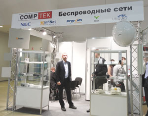 Основным «гвоздем» экспозиции компании CompTek было операторское оборудование для беспроводных сетей связи, позволяющее работать в нелицензируемых диапазонах (что по достоинству должны оценить российские операторы) на скоростях порядка 1 Гбит/с. Беспроводной гигабит по очень и очень привлекательным ценам обеспечивают системы EtherHaul 1200 компании Siklu (71–76 ГГц, дальность связи до 3 км) и AirFiber от Ubiquiti Networks (24 ГГц, 1,4 Гбит/с, до 13 км). |