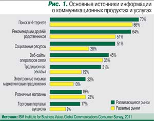 В условиях, когда потребители во всем мире, выбирая поставщика коммуникационных услуг, гораздо чаще руководствуются результатами поиска в Интернете, рекомендациями друзей и информацией из соцсетей, чем веб-сайтами и ТВ-рекламой операторов (рис. 1), задача укрепления их лояльности становится для последних все более важной.