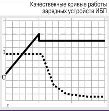 В соединенной последовательно батарее ИБП элементов несколько сотен. Разброс их характеристик взаимно компенсируется, и линейки в целом достаточно идентичны. Кроме того, все современные ИБП имеют зарядное устройство с ограничением тока в начальный момент заряда и поддержанием постоянного напряжения в конце (см. рисунок). Это также сужает возможность возникновения проблем.