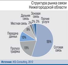 Нижегородская область – на 5-м месте среди регионов РФ по объему доходов от услуг связи. В 2012 г. совокупная выручка ее операторов составила 36,1 млрд руб. (в сравнении с прошлым годом рост – 3%).