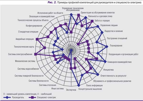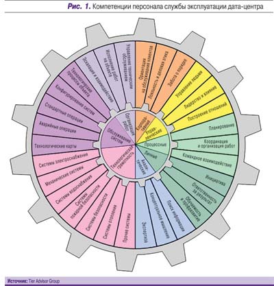 Учитывая конфигурацию дата-центра, реальные потребности в обслуживании оборудования, указанные и иные особенности, руководство службы эксплуатации может составить типовой профиль компетенций для каждого штатного специалиста (рис. 2).