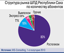 Вечная мерзлота не позволяет расцвести конкуренции на региональном рынке интернет-доступа – немногие решаются осваивать суровый край. Рост количества альтернативных провайдеров долгое время сдерживался недостаточной инфраструктурой магистральных сетей и дороговизной оптового трафика «Ростелекома», фактического монополиста на рынке услуг по пропуску трафика. Соответственно, и розничные тарифы на интернет в республике высоки. Лишь в конце 2012 г. компания ТТК запустила в Якутии еще одну магистральную ВОЛС. В начале текущего года ТТК вышла на розничный рынок ШПД в регионе и сейчас активно набирает абонентов, рассчитывая в перспективе занять не менее 50% рынка. В Нерюнгри оператор приобрел местного игрока «Нерюнгрителеком». Однако с появлением у «Ростелекома» конкурента ощутимого снижения цен для конечных пользователей не произошло, они все еще в разы отличаются от тарифов в центральной части России.
